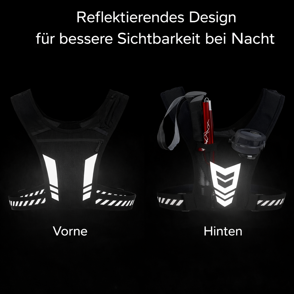 Maximiere dein Training mit dem ReflectaPack, der speziell entwickelt wurde, um Komfort, Ergonomie und Sicherheit perfekt zu kombinieren. Egal ob beim Laufen, Radfahren oder im Alltag – diese Weste unterstützt deinen Körper bei jeder Bewegung.